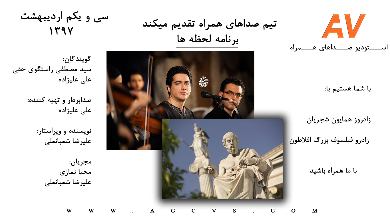 برجسب ها : موسیقی, اردیبهشت, همایون شجریان, افلاطون, چرا رفتی, پادکست, استودیو صداهای همراه, گویندگی, ایران, رادیو همراه برنامه لحظه ها.