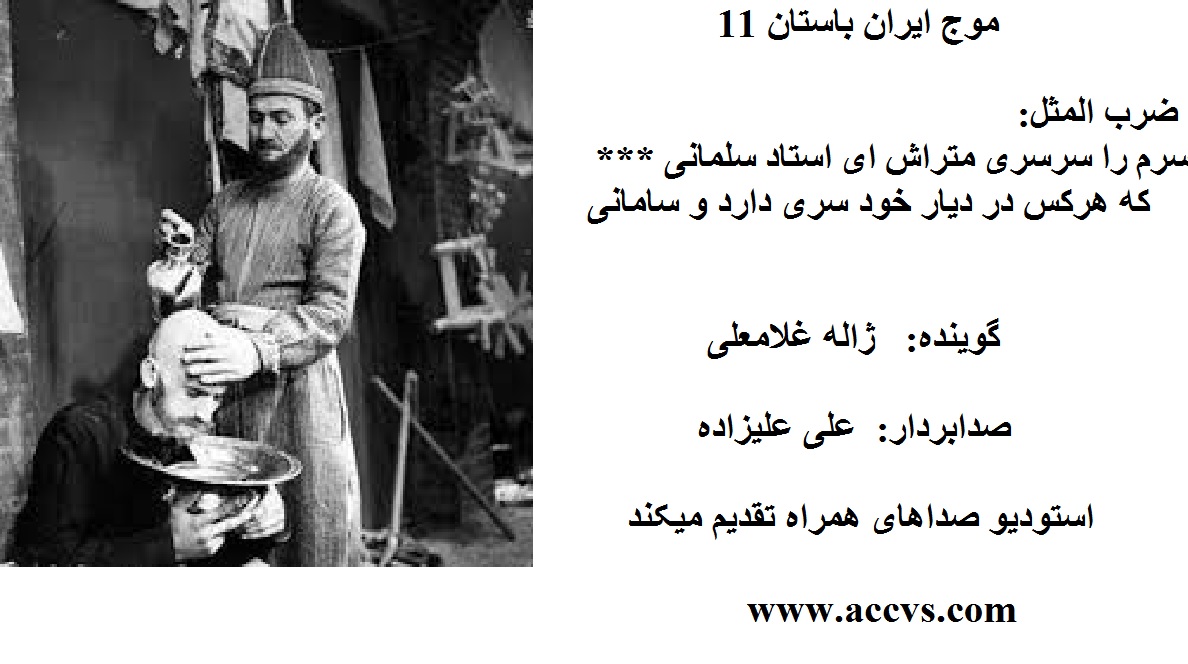 گوینده توانا و ارزشمندمون خانم ژاله غلامعلی با صدای زیبا و خش دارشون این کارهای زیبا رو ارائه دادند، ماجرا از این قراره تو موج ایران باستان قراره درباره ریشه ضرب المثل های قدیمی ایرانمون بدونیم که از کجا اومدن و کجا کاربرد دارن و باید چطوری استفاده بشن، امیددارم دادن این آگاهی، فرهنگ صحبت محافلمون میشه و این دیدگاه جدید تو بالارفتن ارزشهای ایرانیمون تاثیر بسیار زیادی دارد.